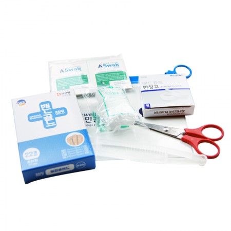 - 7종 응급 용품 구성: 반창고, 가위, 핀셋 등으로 구급함홍보물로 실용적.