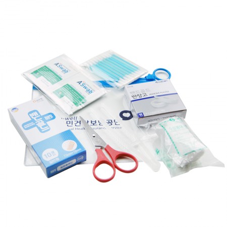 - 8종 응급 용품 구성: 반창고, 가위, 압박붕대 등 필수 품목이 있어 구급함홍보물로 실용적.